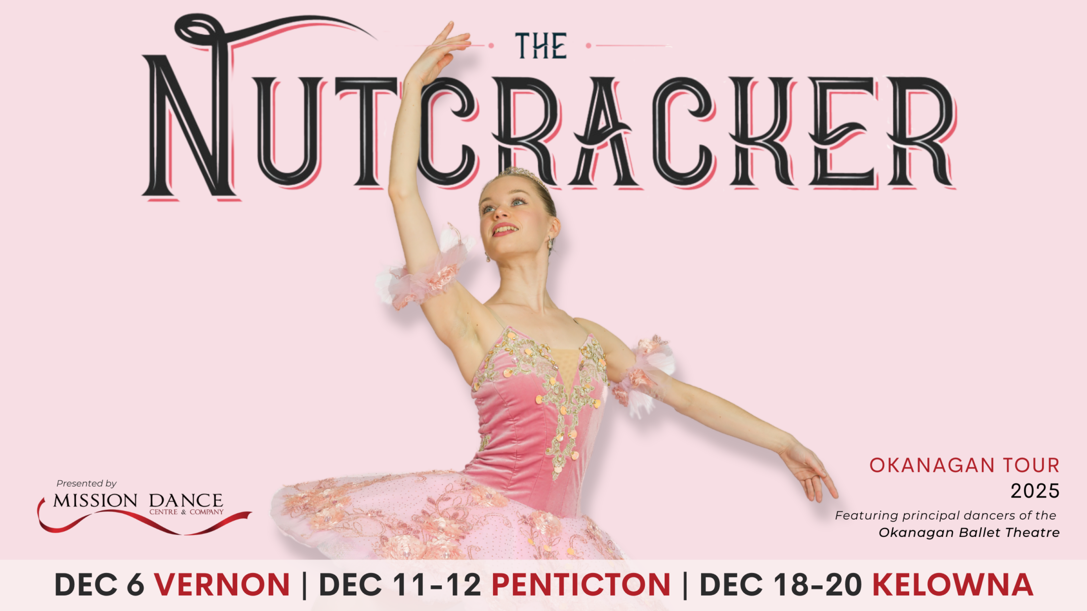 Artistic Director/Producer, Tanya Vadurova is pleased to announce: MISSION DANCE COMPANY will be bringing their annual enchanting and beautiful production of “THE NUTCRACKER” to the stage this December 2024. Featuring guesting dancers of the OKANAGAN BALLET THEATRE along with special guests.